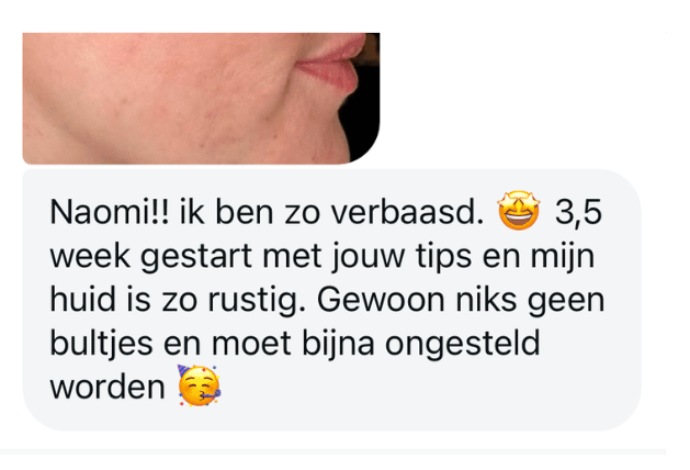 “Binnen een paar weken waren mijn pukkels 76% minder en kon ik zonder make-up naar mijn werk. Beste beslissing ooit!”